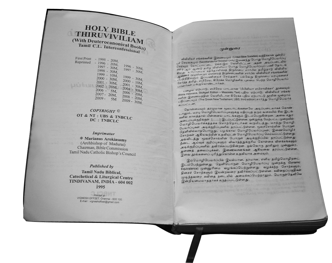 திருவிவிலியம் பொது மொழிபெயர்ப்பின் பதிப்புரிமை பக்கமும் முன்னுரை பக்கமும்